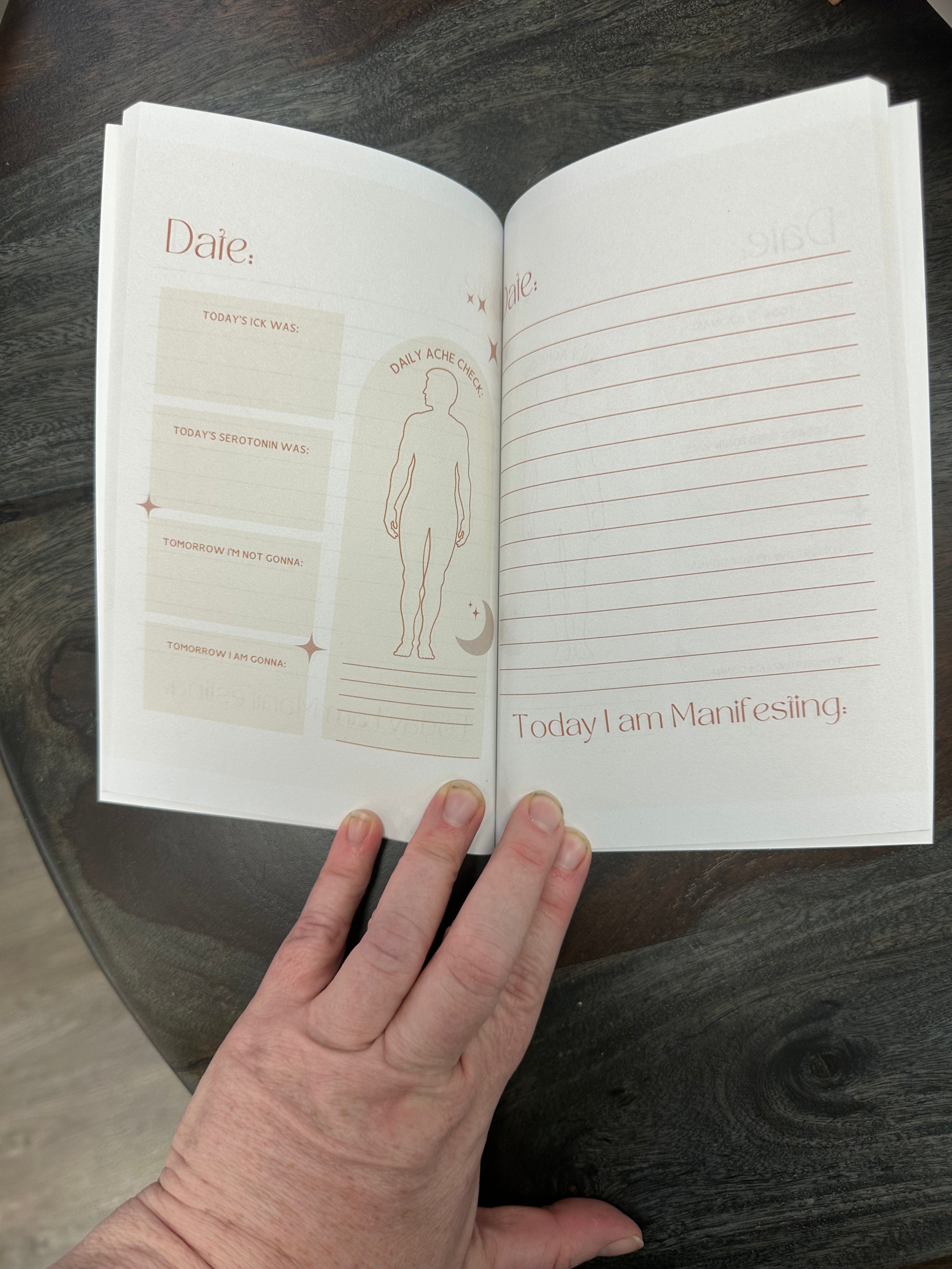 This journal is for those of us who have reached a certain age and have started to ache for no reason and to get annoyed by most things. This is a place to reflect on your day and to find your serotonin in the midst of everything. There is also a space to write out your ideas, to manifest your future, to rant about the world, or to do whatever else you come up with. It's your Aches & Icks Journal - do what you want with it!